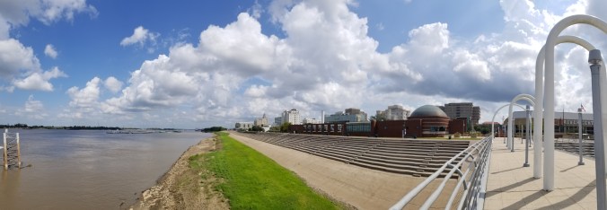 No, the Mississippi River is not smaller than it appears in the pictures. There are reasons it is called the mighty Mississippi. Just a few months ago, the water levels were above flood stage and walking on the leave was prohibited.