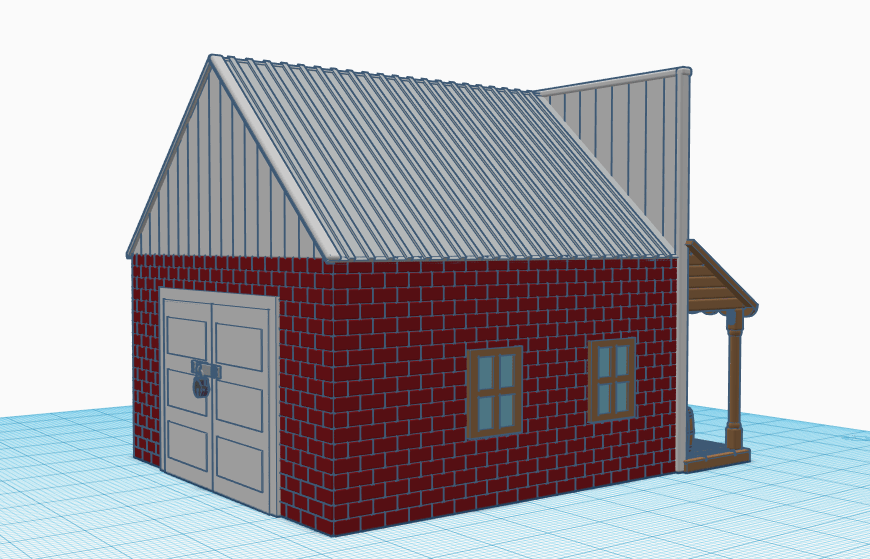This building was created in Tinkercad, which is a easy to use 3D modeling program which it free to use. It is own by Autodesk and it is their apparent their goal it to teach students how to design. This is the link to view the 3d Railroad Town Mercantile building in Tinkercad.
