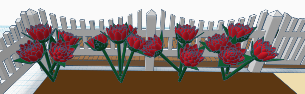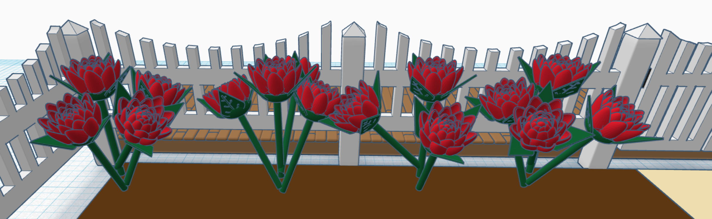 The mayor’s house needed a flower garden. I create one rose and stem; then to create the bush I duplicated it, changed the angle, rotation and position.