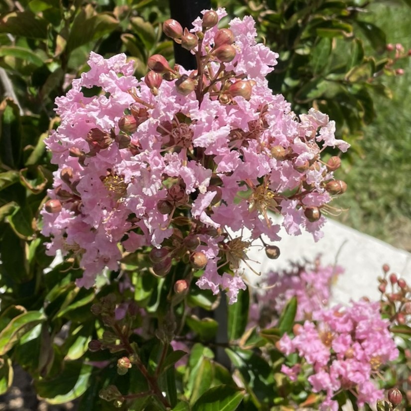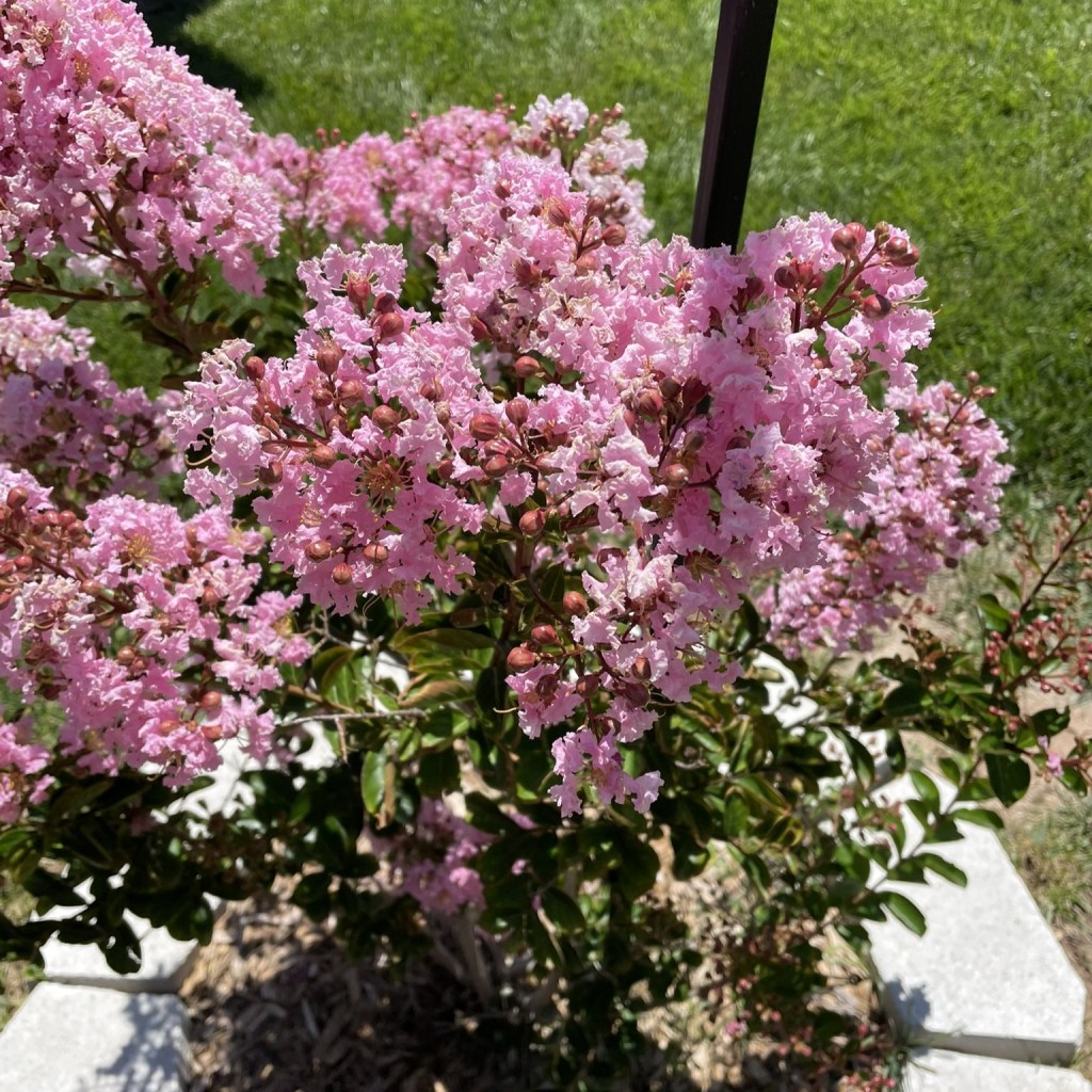 Last year, I also planted a one-gallon Crape Mrytle, and it was a wimp. It hasn’t grown much in a year, but the blooms this year are fantastic. I have a lot of fond memories of climbing the crape mrytle in my backyard, including falling out of the tree. Once I caught my breath, after falling out of the tree, I gave it a dirty look, and climbed in again.