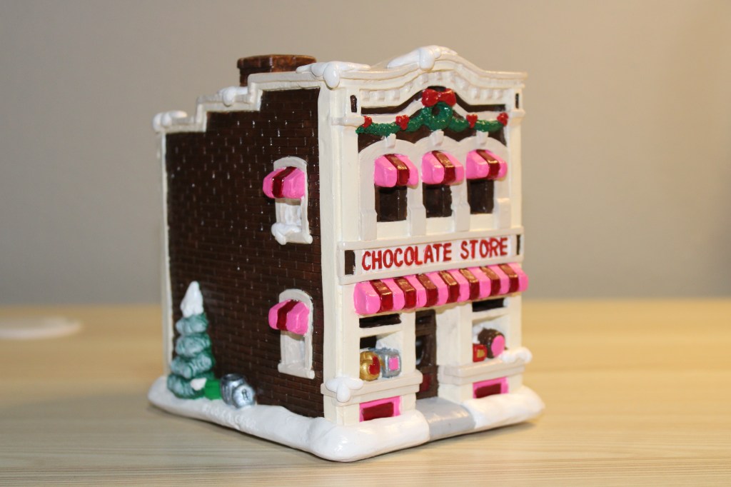 I did not finish a lot of houses this year, only four. Below are last three I finished. Only the Chocolate Shop is California Creations. The other two are labeled Creative Craft. They are very similar to California Creations making me think that when California Creations when out of business, they may have sold the molds to this company. I have no evidence, but all the houses have the same feel.