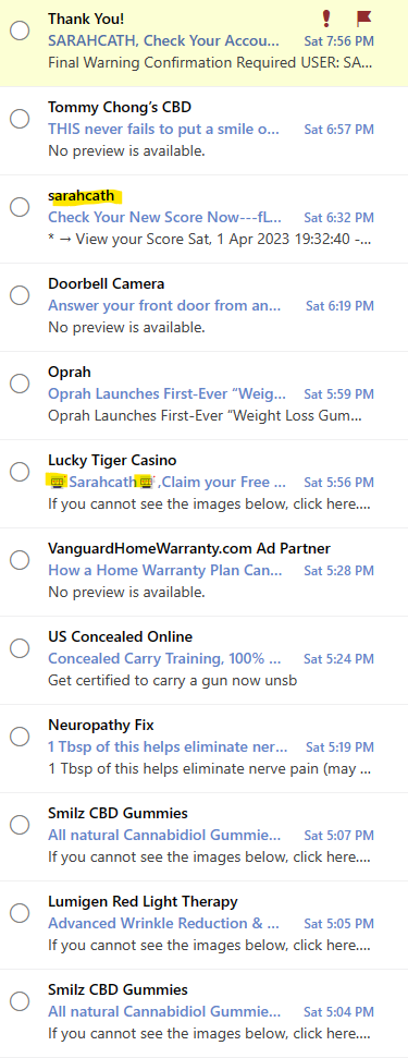 Seriously, the majority of my junk mail is from spammers. A small percent is actually from businesses I have contacted in the past. Below are just a few of the emails I have received from spammers.