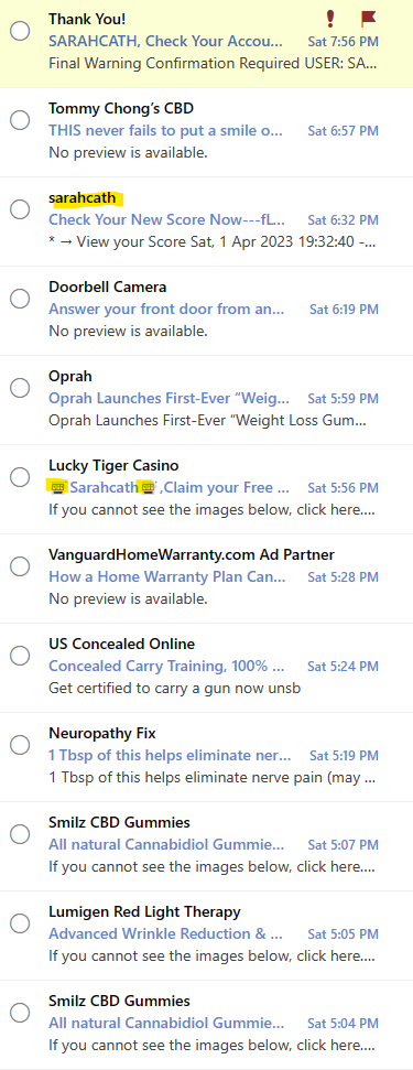 Emails not addressing me by my name. They are using part of my email address. Or, emails address to the wrong person.