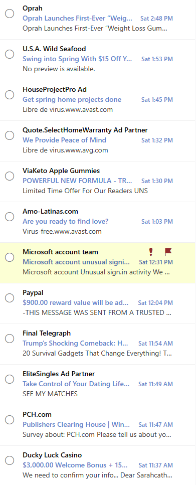 You may wonder why I consider the apparent email from Paypal and Microsoft Account Team to be spam. Simple explanation; Paypal is not affiliated with this account. Now, the Microsoft look legit, however…