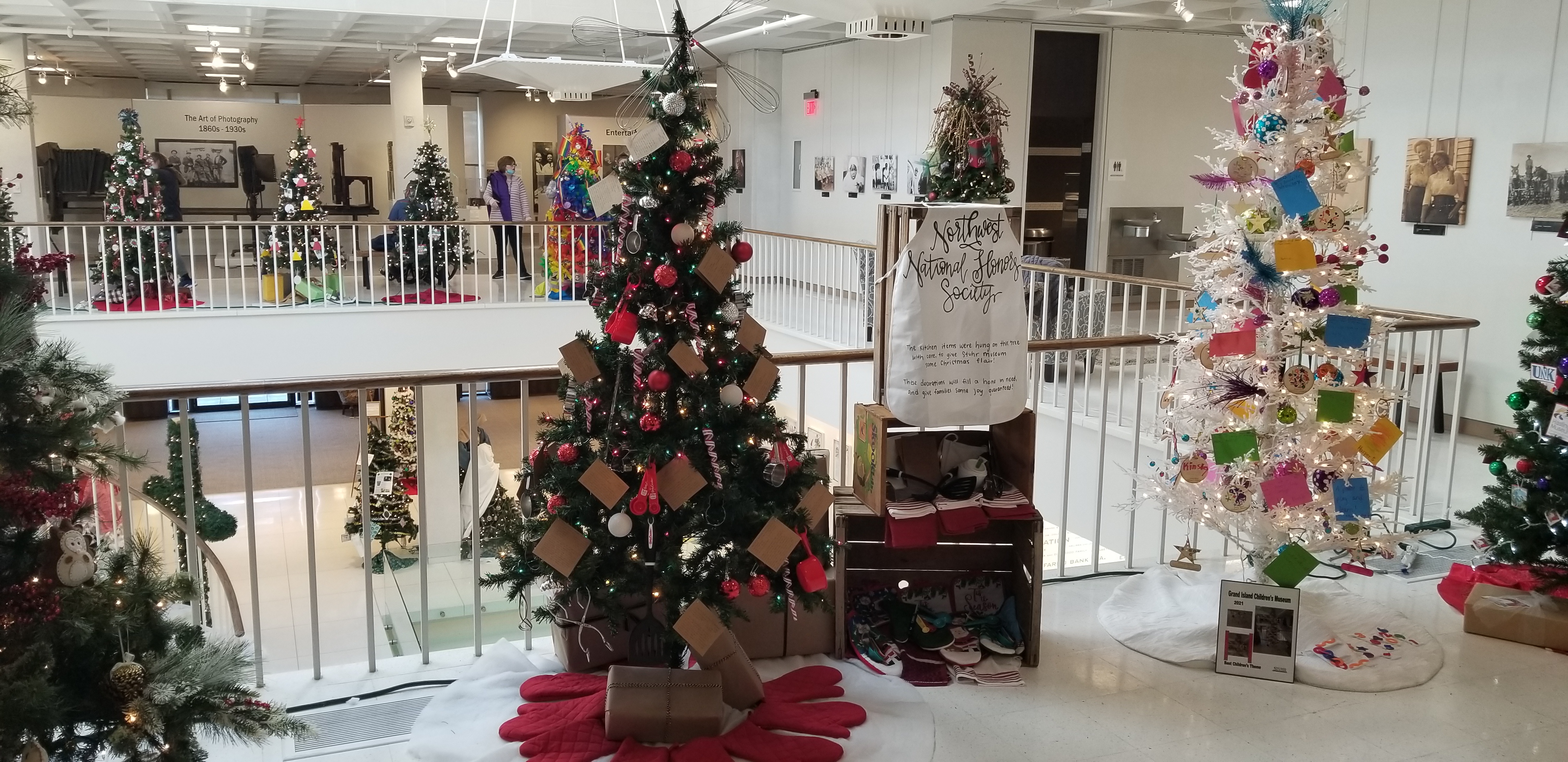 Every year, the Stuhr Museum in Grand Island, Nebraska and the Hasting Museum allows individuals and organizations to decorate and display a Christmas Tree in their museums. Below is a dozen of these trees.