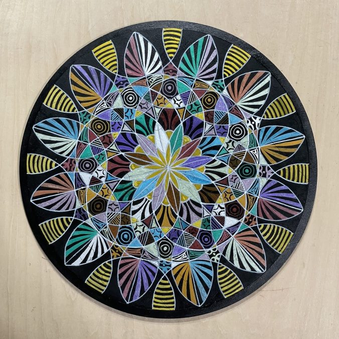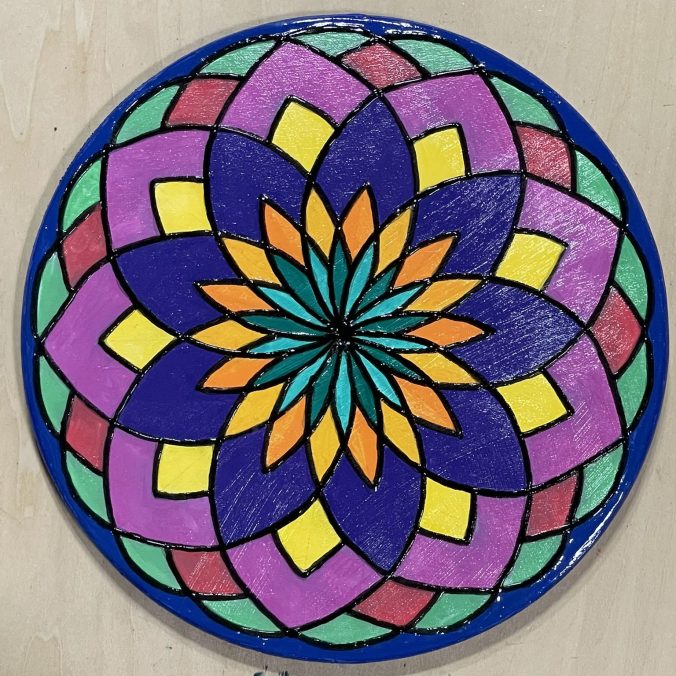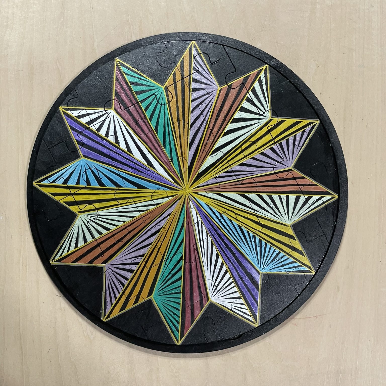 2025 Puzzle – This originally was just a blank puzzle. I use black gesso to paint both pieces, the puzzle and the base. The I used paint markers to design the piece.