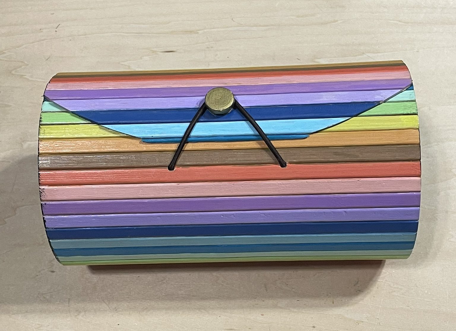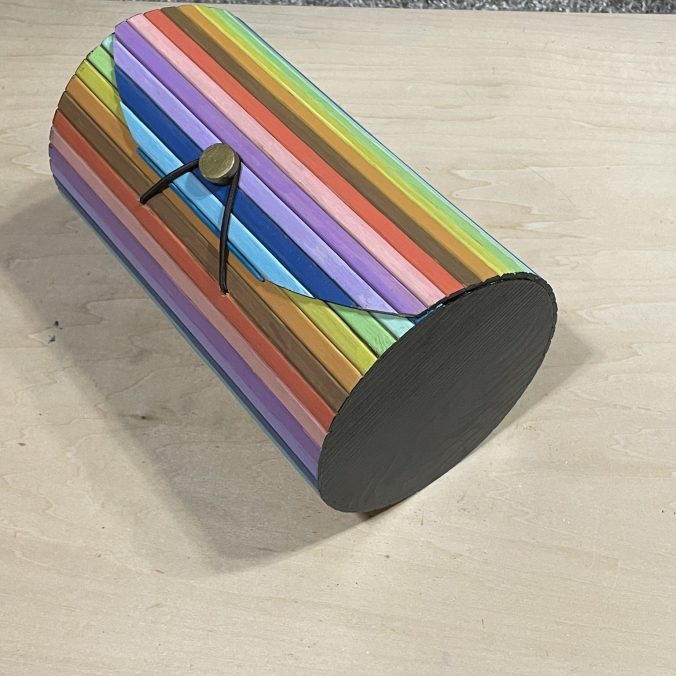 I found this bamboo box at Hobby Lobby. I thought each striped needed its own color. I used the Sharpie Creative Color Marker to paint the outside, and Americana Craft Paint to paint the sides and inside. I am still deciding what to do with it.