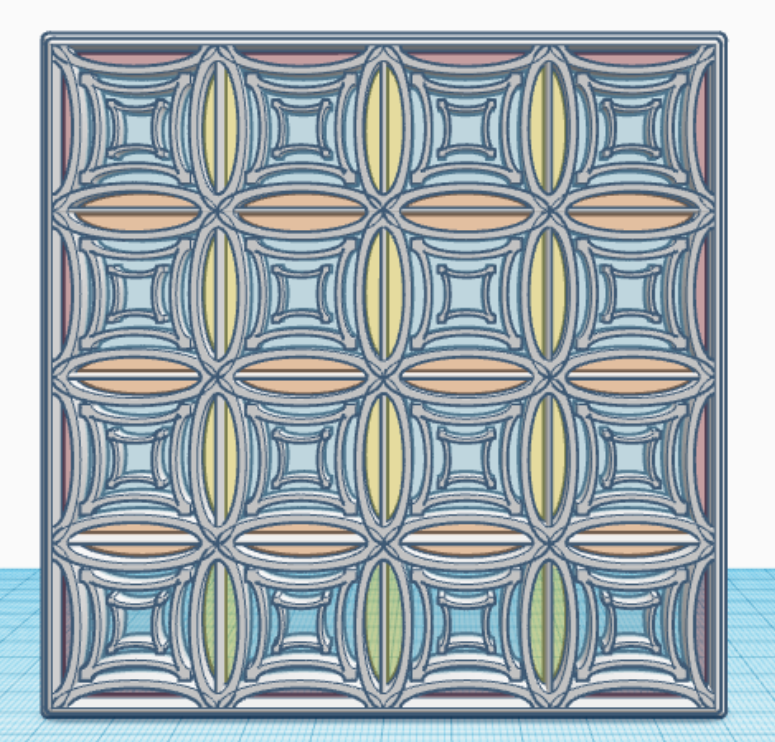 In January, I created one tile/design/pattern/window a day for 31 days. Each tile is 4″ x 4″ x 0.252″ or 101.6mm x 101.6mm x 6.4mm, which should work very well for 3d Printing. Here are examples of some of the tiles I created. They are just designs and patterns, there is no hidden meaning behind a tile.